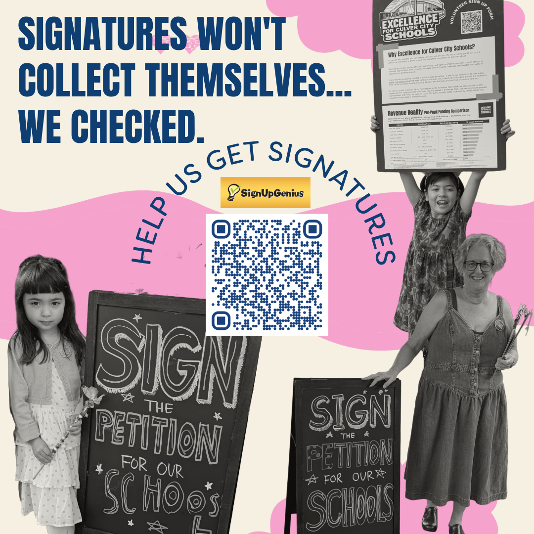 Excellence for Culver City Schools is a grassroots initiative organized by parents and residents who care deeply about the future of our schools and our community. We invite all community members to join us in making a lasting impact on Culver City’s future.