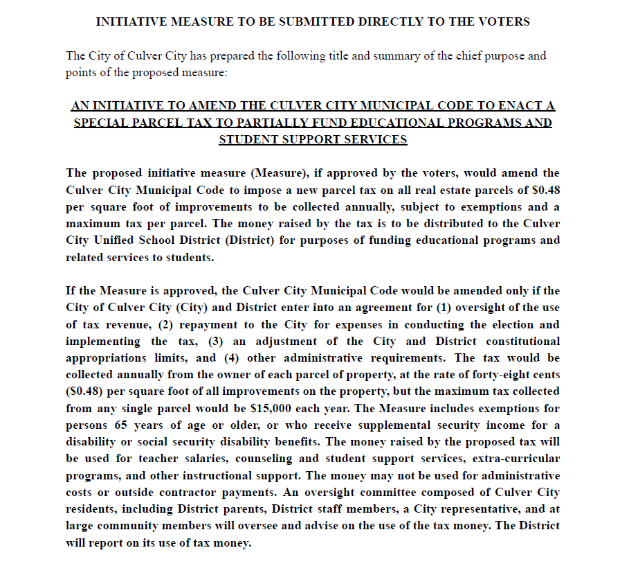 We are a group of Culver City citizens, parents with children in Culver City Unified School District (CCUSD) who are committed to ensuring that our students receive a high-quality education in a safe and supportive environment and that our city remains a highly desirable place to live and work, with above market property values. Many of us chose to live in Culver City specifically because of its strong public schools. This initiative reflects our shared commitment to protecting and strengthening that foundation for current and future families.